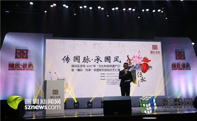 6月10日下午,福田區(qū)2017年“文化和自然遺產(chǎn)日”暨“福田 傳承”非遺系列活動文藝匯演福田文化館星空劇場舉行。