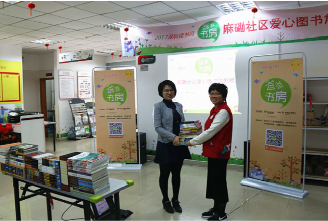 據(jù)介紹,為建設(shè)“學習型社區(qū)”,麻磡社區(qū)已經(jīng)建立了“四點半學校閱讀區(qū)”閱讀室,但由于社區(qū)原有圖書陳舊,急需一批新書豐富圖書資源來滿足社區(qū)孩子們的閱讀需求。了解到這一信息后,“爸爸書房”聯(lián)合中國工商銀行深圳分行、深圳市閱讀聯(lián)合會采購了一批全新的兒童讀物送到麻磡社區(qū),建立“爸爸書房愛心圖書角”,助力社區(qū)圖書室建設(shè)。