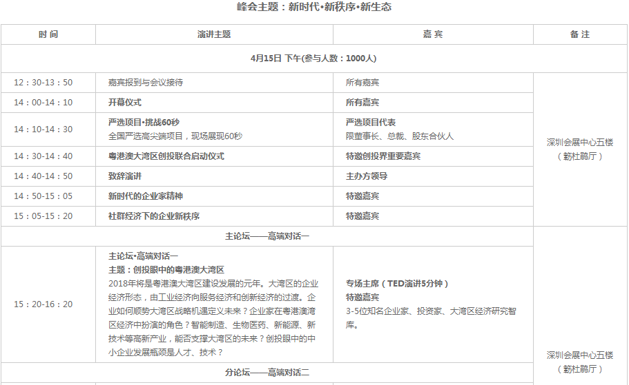 2018總裁創(chuàng)新峰會以“新時代、新秩序、新生態(tài)”為主題,秉承“全球智慧、共享發(fā)展”理念,以全球化視野的戰(zhàn)略性眼光,順勢大眾創(chuàng)業(yè)、萬眾創(chuàng)新和粵港澳大灣區(qū)的戰(zhàn)略機(jī)遇,積極推動建設(shè)新時代企業(yè)命運(yùn)共同體,通過“主旨演講+高端對話+資本對接會”,圍繞科技、產(chǎn)業(yè)、金融,關(guān)注創(chuàng)新創(chuàng)業(yè)與創(chuàng)投,邀請政界領(lǐng)袖、中外知名企業(yè)總裁,500強(qiáng)企業(yè)商學(xué)院院長、知名投資家、智庫專家、商會協(xié)會代表、財經(jīng)媒體等,共同探討新經(jīng)濟(jì)背景下中國企業(yè)可持續(xù)發(fā)展的機(jī)遇與挑戰(zhàn)。