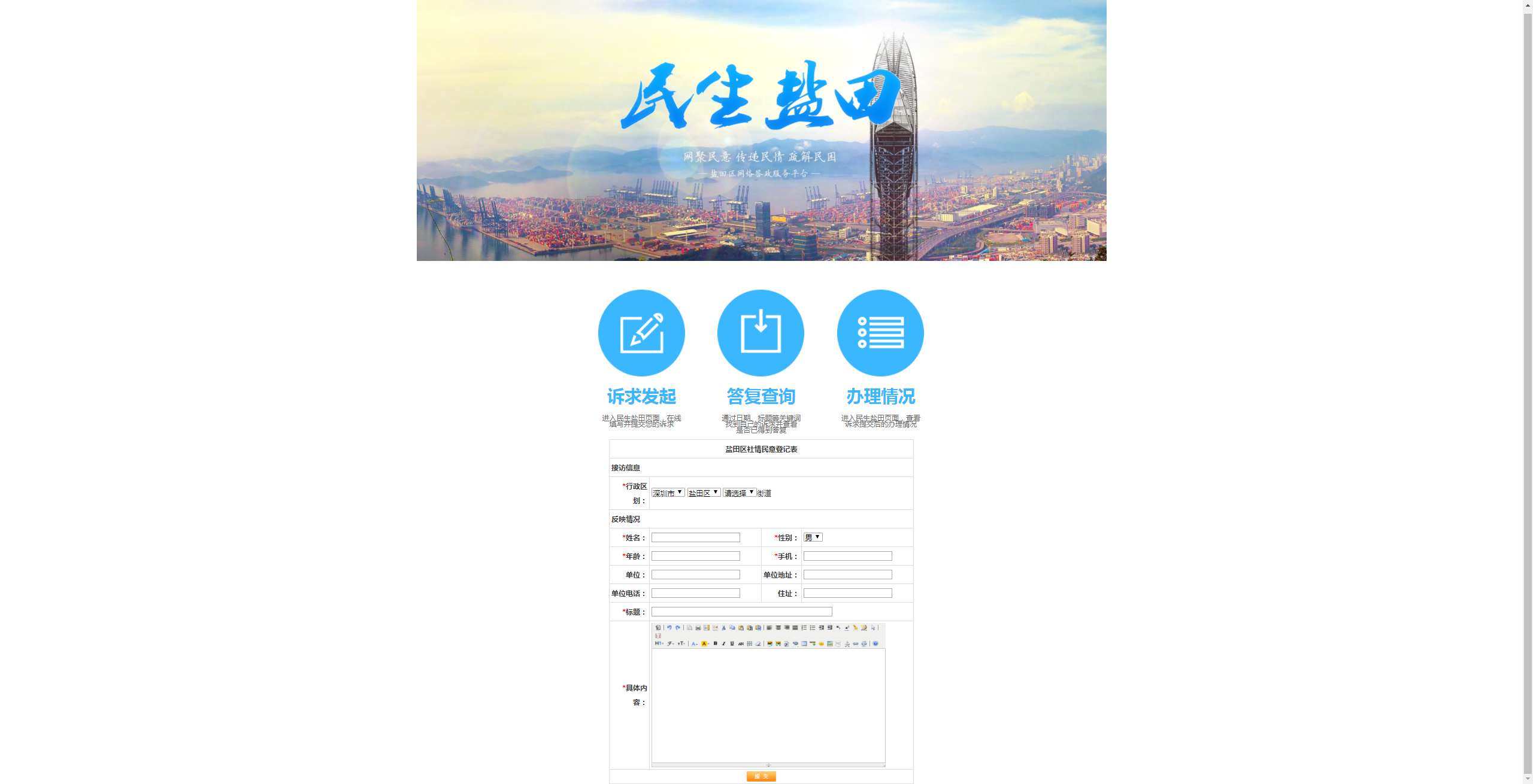 (1)進(jìn)入民生鹽田頁(yè)面,在線填寫(xiě)并提交您的訴求