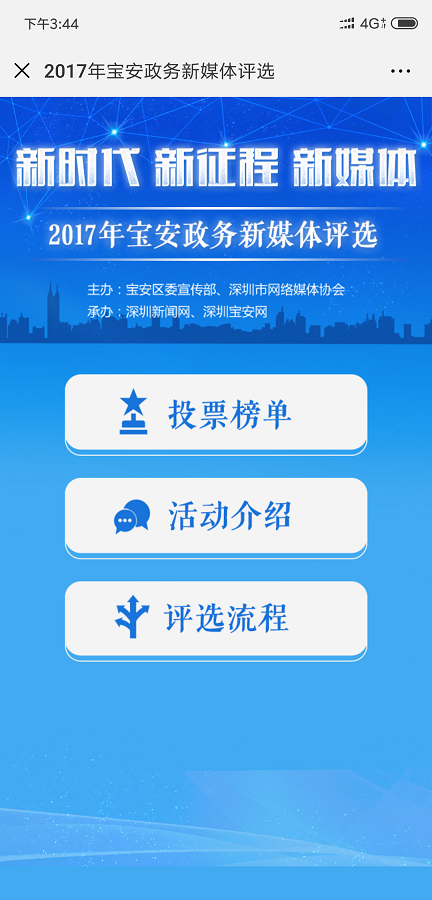 ① 新時(shí)代·新政務(wù)·新媒體 深圳市優(yōu)秀政務(wù)新媒體評(píng)選: