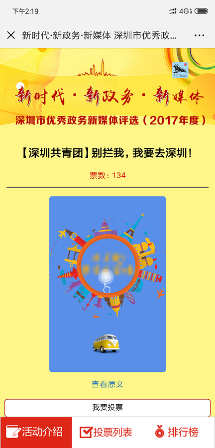 作為中國(guó)"最互聯(lián)網(wǎng)城市〃,深圳近年來(lái)大力建 設(shè)政務(wù)新媒體平臺(tái)矩陣,不斷建立健全工作機(jī)制,搭 建起為市民服務(wù)的新渠道、新平臺(tái),涌現(xiàn)出許多優(yōu)秀 的政務(wù)新媒體。廣大市民網(wǎng)友,有哪些政務(wù)微信么, 讓你"欲罷不能〃,有哪位小編讓你〃刻骨銘心〃, 有哪些作品讓你"秒轉(zhuǎn)秒贊"?請(qǐng)為他們投上寶貴一 票吧!本次投票活動(dòng)作為"新時(shí)代新政務(wù)備體"—— 深圳市優(yōu)秀政務(wù)新媒體評(píng)選(2017年度)活動(dòng)的重要 組成部分,其結(jié)果將作為專家評(píng)審類獎(jiǎng)項(xiàng)評(píng)選的重要 參考細(xì),權(quán)重占比50%。