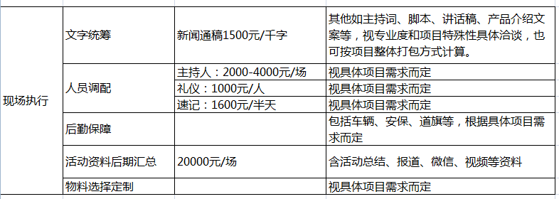 3、后勤保障:舉辦大型活動時,為了保障嘉賓安全,渲染現(xiàn)場氣氛,通常需要有一系列的車輛、安保、道路指引旗幟等工作。深圳新聞網擁有豐富的大型現(xiàn)場活動把控經驗,特別是與相關部門,如城管、公安、交通等主管職能機構溝通、協(xié)調、策劃的能力,保障活動安全,萬無一失。具體費用需要依據(jù)項目的規(guī)模、時長、等級來具體商議。