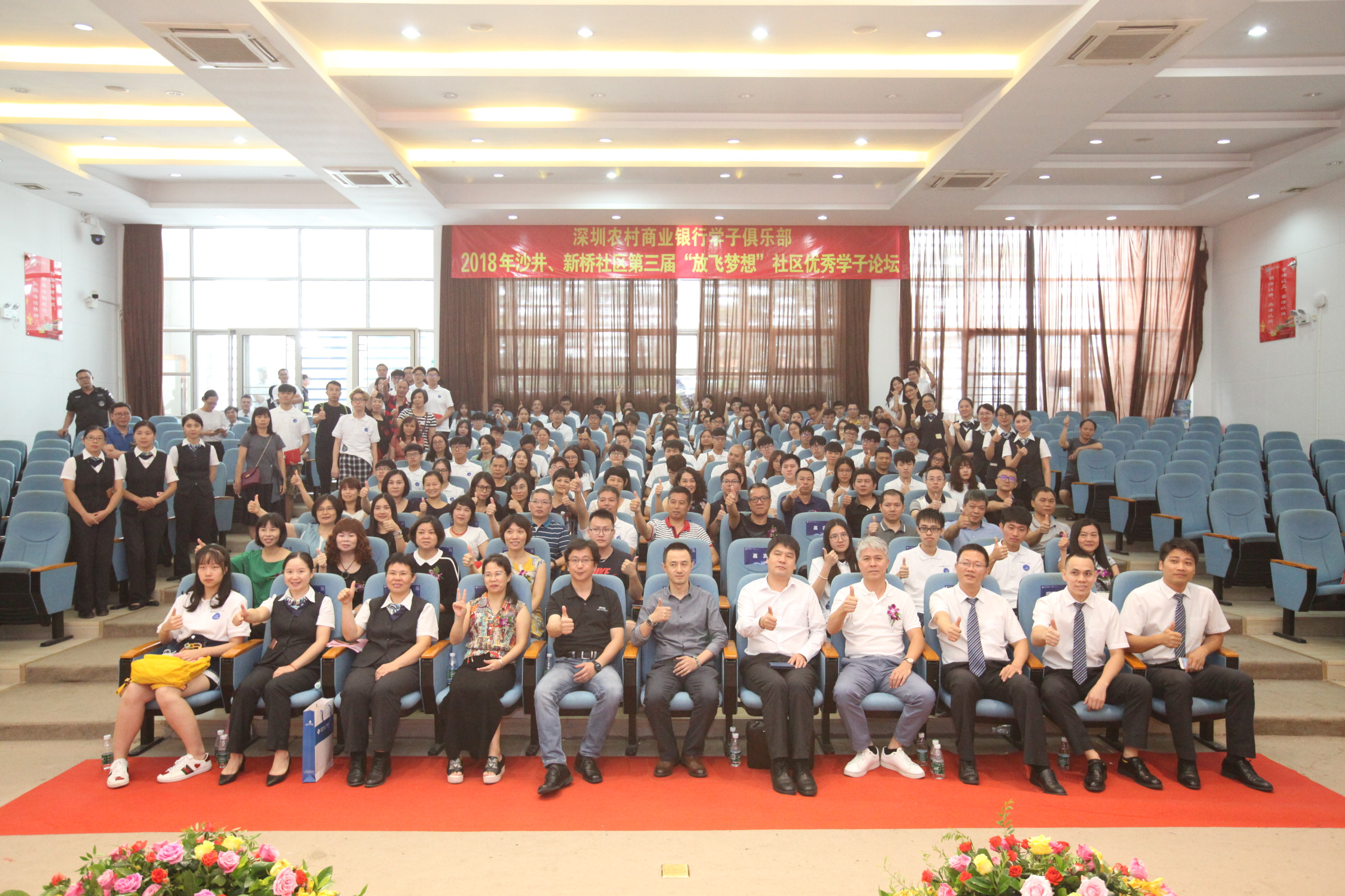 2018年8月22日,深圳農(nóng)商行沙井支行舉辦的第三屆“放飛夢想”優(yōu)秀學(xué)子論壇活動在沙井中學(xué)圓滿完成。本次論壇從心理、學(xué)習(xí)、生活、理財(cái)、實(shí)踐等角度,為即將踏入大學(xué)的社區(qū)學(xué)子們提供規(guī)劃參考,并給予學(xué)子們“信通英才獎學(xué)金”獎勵。