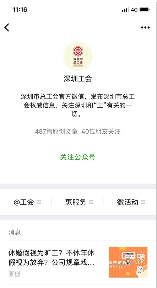 案例介紹:“深圳工會”是深圳市總工會官方自媒體,2015年上線,目前用戶數(shù)20萬。致力于打造集“工會發(fā)聲平臺”“工會工作者掌上寶典”“指尖上的職工之家”為一體的新媒體平臺。堅持以職工為中心,體現(xiàn)工會特色,運用“互聯(lián)網(wǎng)+工會”思維,遵循新媒體傳播規(guī)律,突出公益性、服務性,采取社會化運營方式,整合資源,與知名媒體聯(lián)動,注重實用性和互動性。適應職工需求,開展豐富的線上線下活動,活動參與人次達500萬。作為深圳工會新媒體的龍頭,積極提供業(yè)務指導和技術(shù)支撐,形成覆蓋百萬職工的工會新媒體矩陣。