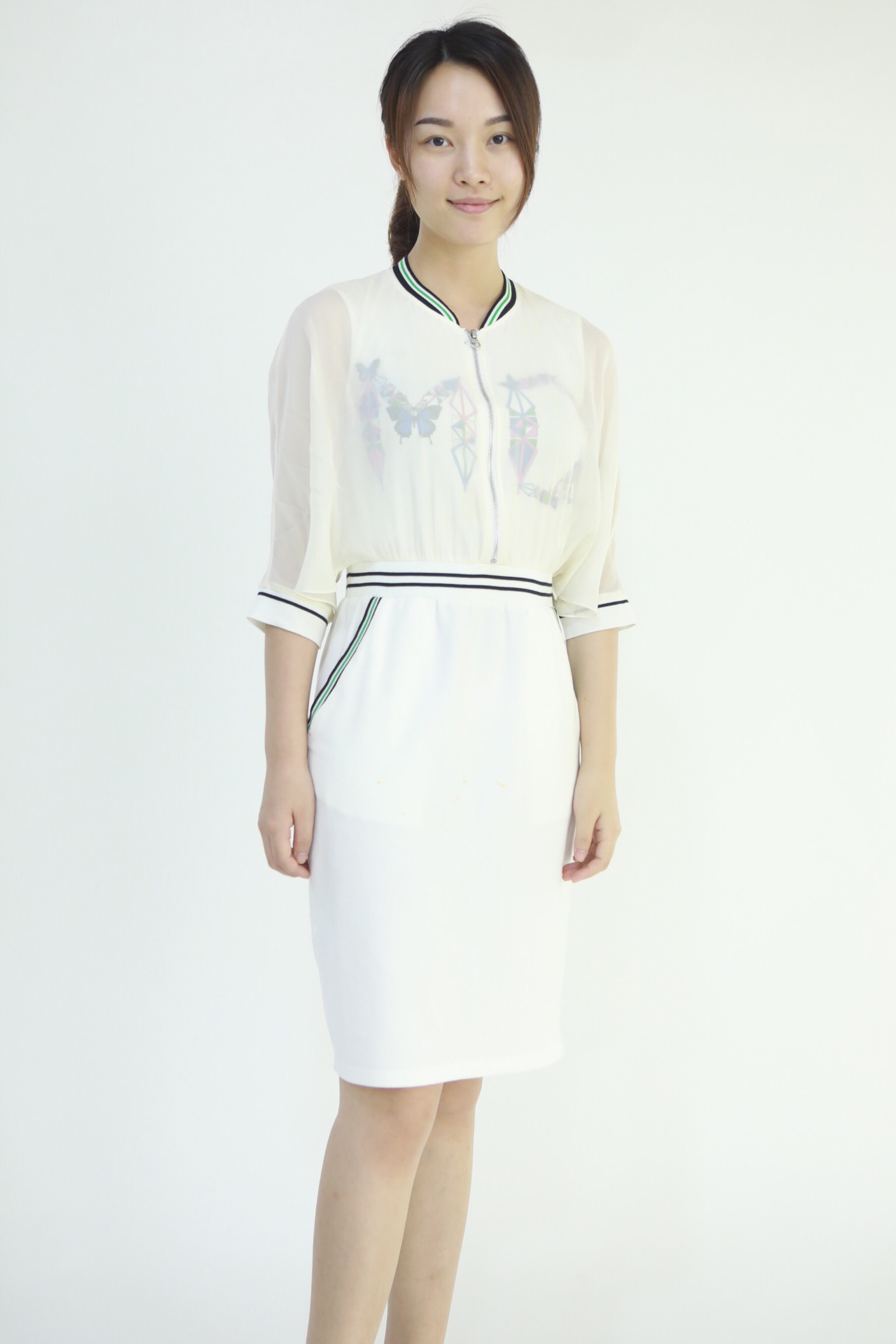 改造前:白色半透外套+白色中裙