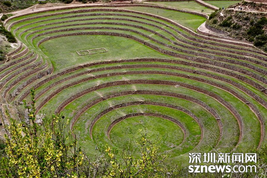 在廣袤的山丘間,呈現(xiàn)眾多頗似環(huán)形階梯劇場(chǎng)的下沉式梯田,其深度從百米到160米不等。一塊梯田的十多層梯級(jí)環(huán)環(huán)相連、層級(jí)勻稱的圓形梯田好像外星人的繪畫杰作。李仁奇攝