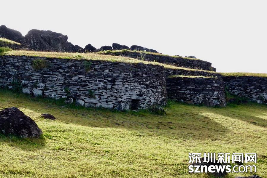 火山口邊沿有古代土著波利尼西亞人輪流值守家園的石砌地堡,他們當時在此守望什么,防止入侵者亦或試圖發(fā)現新的島嶼?這是至今未解之謎。李仁奇 攝