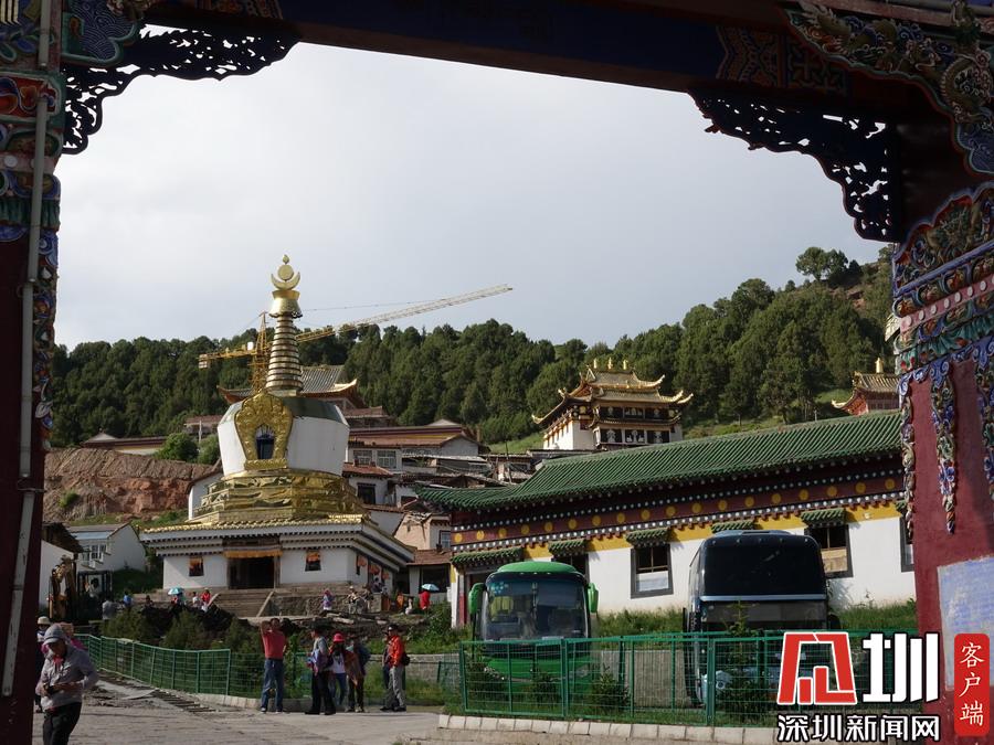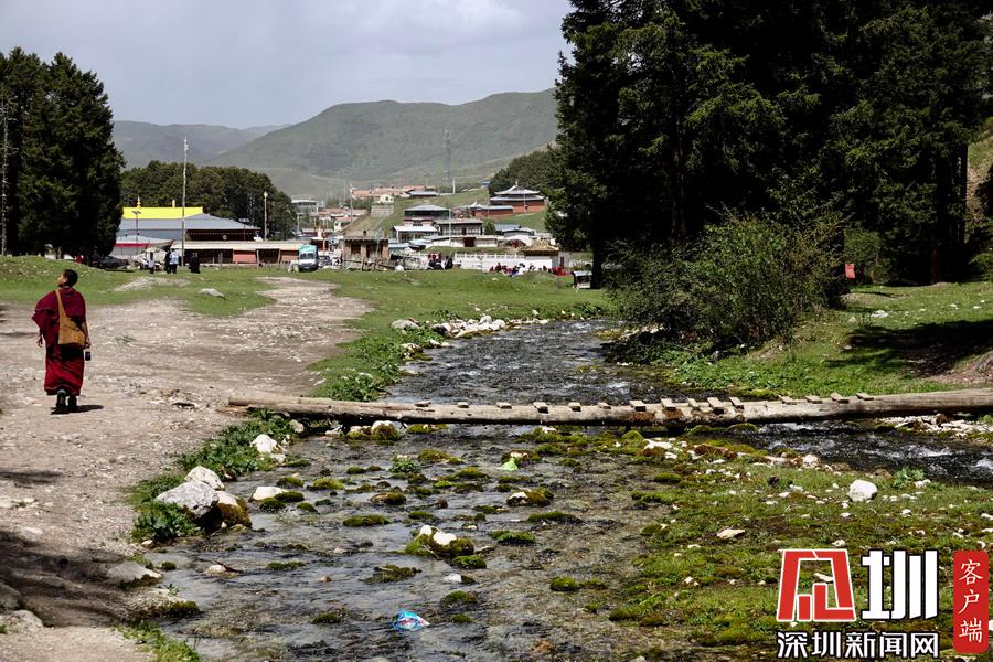 鎮(zhèn)內(nèi)的主要街道分屬兩省管轄。南北兩端,幾百米之內(nèi),有兩座壯觀宏大的寺院建筑群隔“江”(白龍江源流)相望,甘肅境內(nèi)是“賽赤寺”。四川境內(nèi)有“格爾底寺”。李仁奇攝