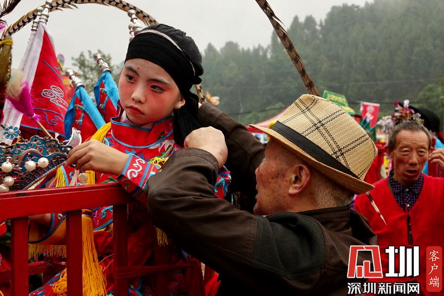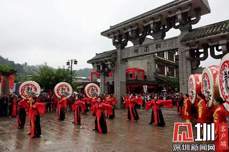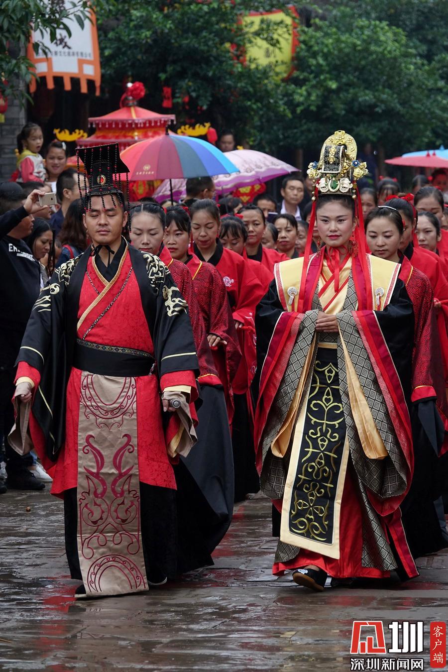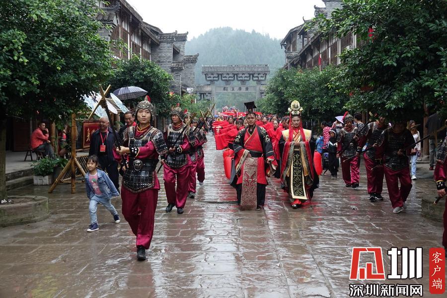 郪江古鎮(zhèn)古典風格的迎賓儀式和民俗風情展示。李仁奇攝