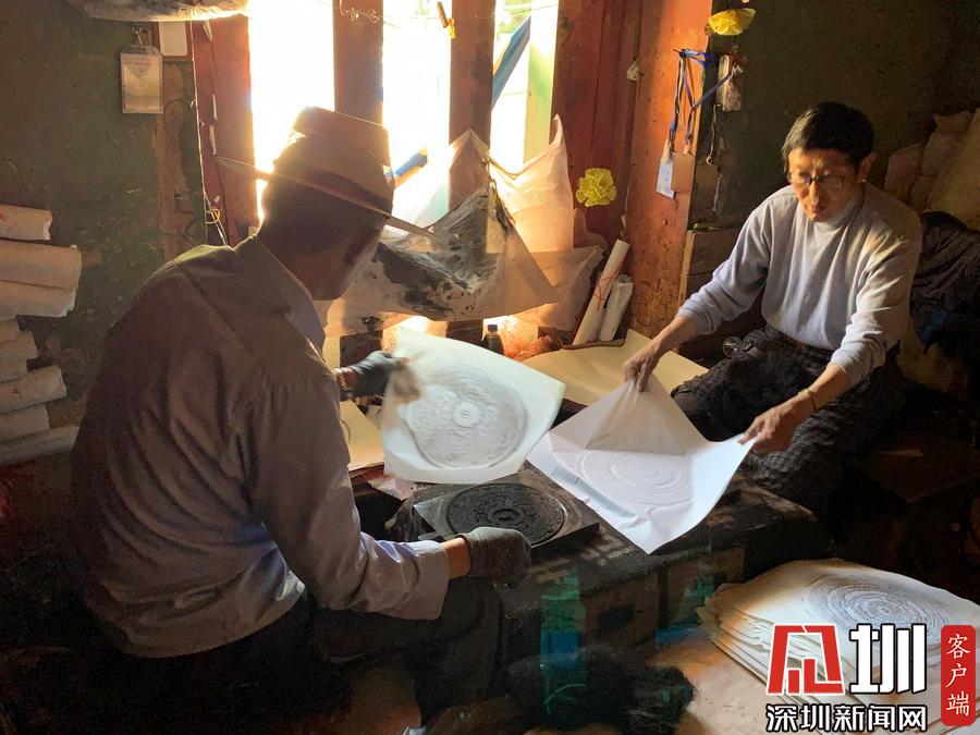 高坐的人負(fù)責(zé)接紙并準(zhǔn)確固定印版與印紙之間的一拓面,以及在印版上滾墨,矮坐的人則一邊遞紙,一邊持卷布干滾筒,自上而下雙手推過(guò),迅速揚(yáng)起已印的書頁(yè)放置一旁,如此周而復(fù)始。李仁奇攝
