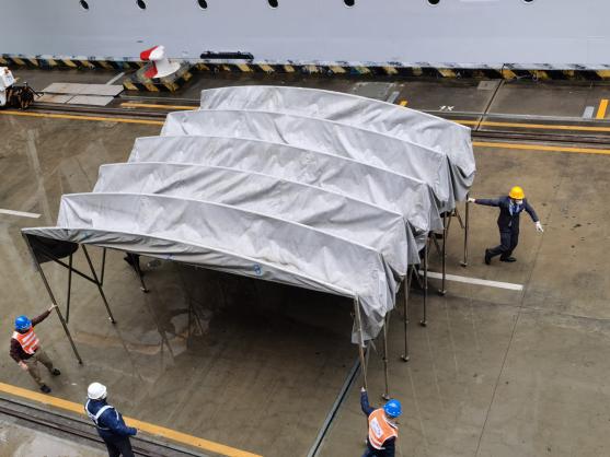 疫情就是命令,防控就是責(zé)任。目前正值春運保障高峰,蛇口郵輪母港作為重要交通樞紐,接到歌詩達“威尼斯”號郵輪重大疫情防控指令后,在政府機構(gòu)的統(tǒng)一領(lǐng)導(dǎo)、招商蛇口的組織部署及關(guān)檢單位的協(xié)同配合下,全體員工勇?lián)?、敢作為,把維護旅客平安出行和員工身體健康作為“第一要務(wù)”,全面落實聯(lián)防聯(lián)控措施,構(gòu)筑起群防群治的嚴密防線。