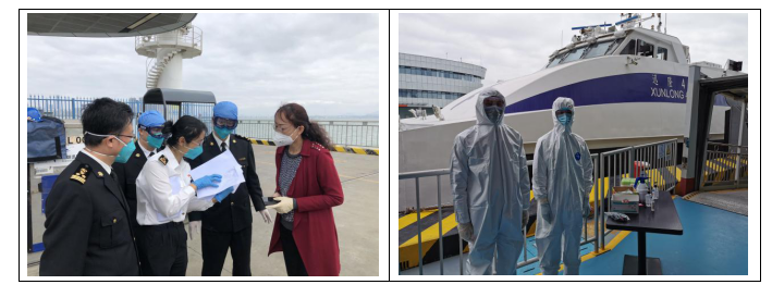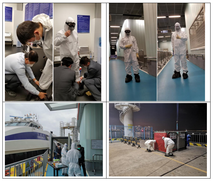 港口各級干部員工勇于擔(dān)當(dāng)、迎難而上,勠力同心、眾志成城,共同筑牢嚴(yán)防疫情輸入的堅強防線,用實際行動詮釋了“牢記使命勇?lián)?dāng)”。蛇口郵輪母港呂如福常務(wù)副總經(jīng)理與港口運營中心林麗華總經(jīng)理連夜開會部署至深夜,第二天仍早早趕到現(xiàn)場與聯(lián)檢單位共同查勘旅客動線;賴乙海總監(jiān)接到航班通知后,放棄值班休息第一時間趕到現(xiàn)場布置各項保障任務(wù),并親自為一線員工穿戴防護用品;港口一線員工面對夜間加開航班旅客人數(shù)多且有發(fā)燒旅客的情況,毫不退縮、沖鋒在前,順利完成保障任務(wù),一直到深夜客船和旅客動線消毒清場完畢才下班。