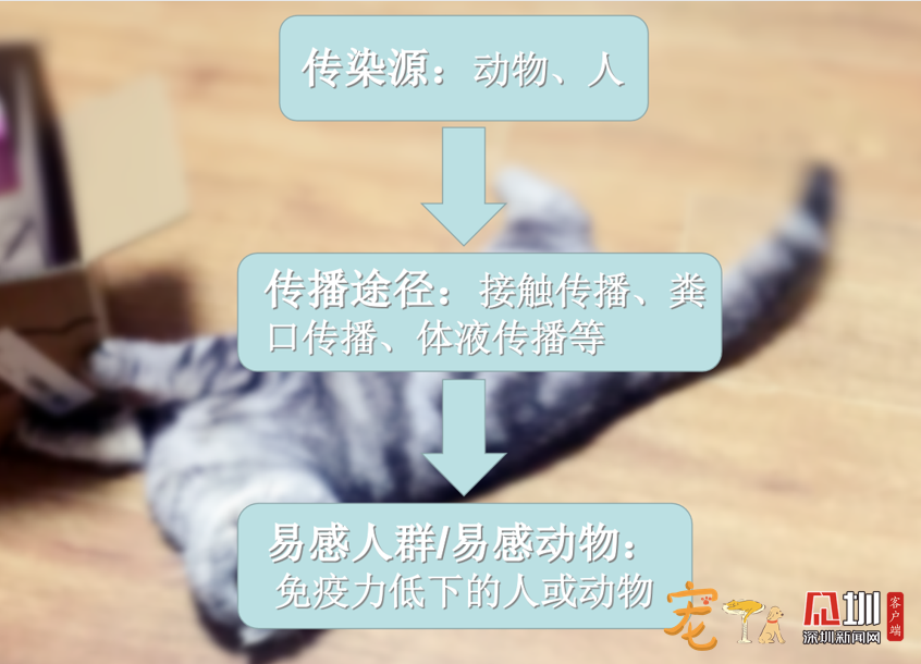 一般來(lái)說(shuō),人寵共患病可以分為3個(gè)基本環(huán)節(jié):傳染源、傳播途徑及易感人群(或易感動(dòng)物)。