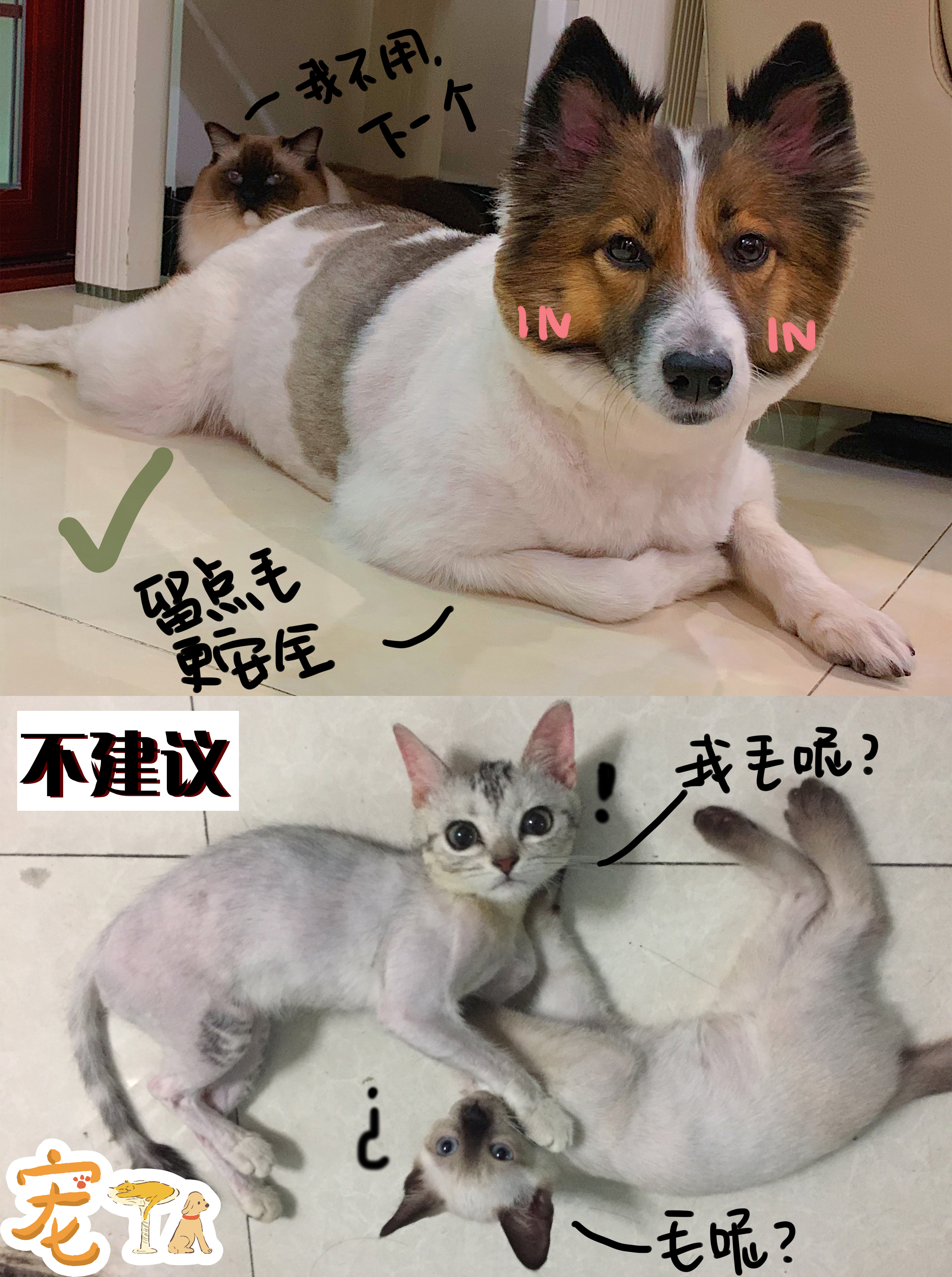 無論貓咪還是狗狗,或者兔子、倉鼠,剃毛都可能令他們受到驚嚇,或者因為自己“禿了”而受到心理傷害,如果自家“毛孩子”擁有敏感的性格,應該在剪毛后對其安撫、夸贊;非必要情況下,不建議擅自給寵物剃毛。