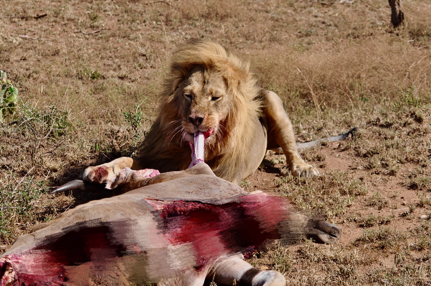 游客們在距雄獅三、五米的車上從容地拍攝了二十多分鐘,記錄下了叢林法則下這場血腥饕餮大餐的全過程。李仁奇 攝