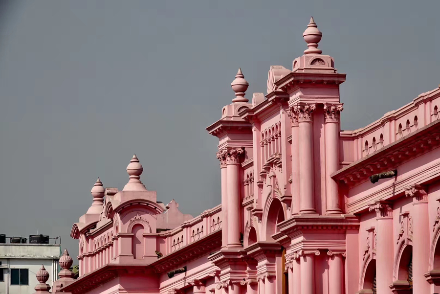距孟加拉恒河渡口不遠的地方有一座粉紅色宮殿式的豪華建筑。那是1872年一位名叫阿赫桑曼濟勒的地主在法國人留下的倉房基礎(chǔ)上改建的私邸,后來曾在一次龍卷風(fēng)襲擊時受創(chuàng)。李仁奇 攝