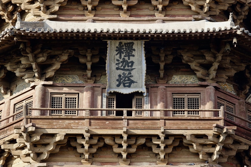 釋迦塔高67.31米,底層直徑30.27米,呈平面八角形。全塔用紅松木料3000立方米,重2600多噸,純木結(jié)構(gòu)、無(wú)釘無(wú)鉚。塔內(nèi)供奉著兩顆釋迦牟尼佛牙舍利。李仁奇攝