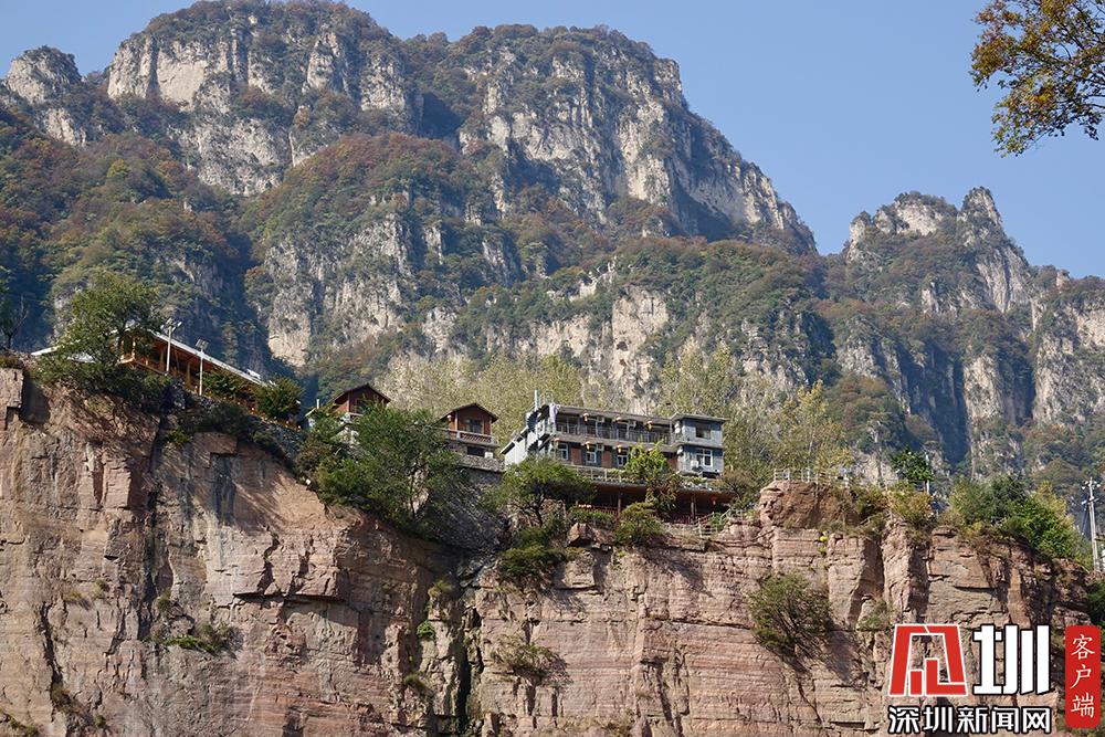 1972年,13位村民在申明信的帶領(lǐng)下,賣掉土特產(chǎn)品,集資購買鐵錘、鋼釬,全憑人力,歷時(shí)五年,在絕壁上鑿掉2萬6千立方米的巖石,開出一條高5米、寬4米,全長1300米的隧道,于1977年5月1日通了汽車。圖為在絕壁上的郭亮村。李仁奇攝