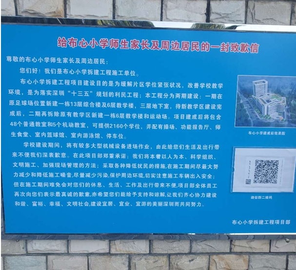 記者就此事聯(lián)系了羅湖區(qū)教育局。11月12日,記者獲悉羅湖區(qū)教育局回應作出了官方回應。首先對布心小學改擴建工程進行了介紹。該工程于2017年11月3日由羅湖區(qū)發(fā)展和改革局立項,由羅湖區(qū)建筑工務署實施,委托深圳市天?。瘓F)股份有限公司代建。經(jīng)前期方案設計及相關法規(guī)程序審批,于2020年9月正式實施。有關重建項目的必要性,羅湖區(qū)教育局解釋:“本項目建設經(jīng)可行性研究論證,有利于緩解片區(qū)學位緊張狀況,改善學校教學環(huán)境。作為羅湖區(qū)重點民生工程,項目分兩期建設:一期在原操場位置新建綜合樓、教學樓,二期在新教學區(qū)建成后拆除舊教學區(qū),新建教學樓和運動場。項目實施后辦學規(guī)模達到48班,增加學位540個,并完善功能配套設施等。”
