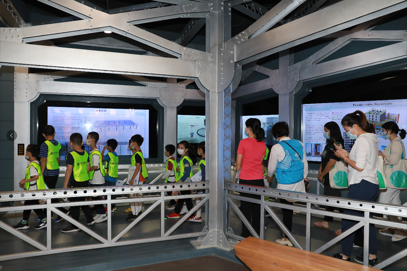 序廳、歷史廳、科技廳、互動廳、未來廳,每一個展廳都給大家?guī)聿灰粯拥捏w驗。大小朋友們在老師的帶領(lǐng)下了解世界鋼結(jié)構(gòu)的發(fā)展歷程、探尋中國鋼結(jié)構(gòu)的崛起之路、感受鋼結(jié)構(gòu)文明的氣韻、展望鋼結(jié)構(gòu)的未來。