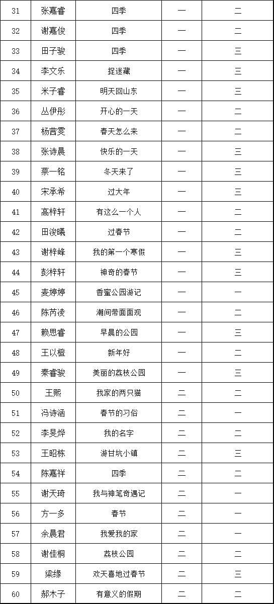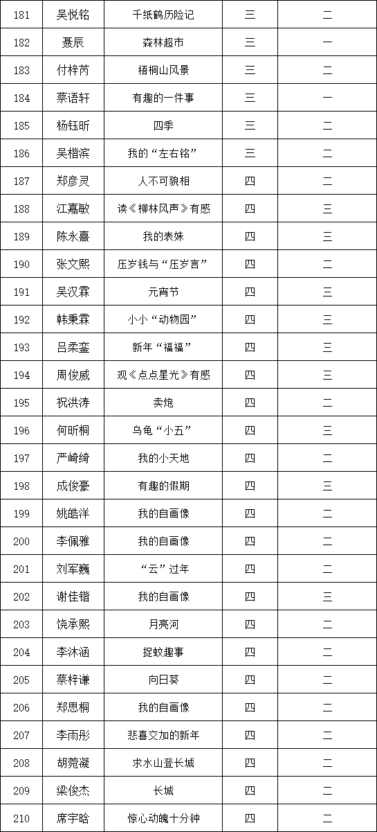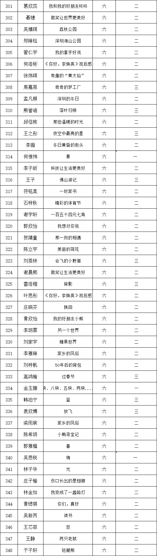 自2021年1月,活動征稿啟動以來,獲得了深圳市廣大中小學(xué)生、教師、文學(xué)愛好者的熱烈響應(yīng)積極參與,吸引了深圳百余所學(xué)校的上萬人關(guān)注報名?,F(xiàn)公布深圳市濱河小學(xué)校園專場晉級復(fù)賽名單如下:
