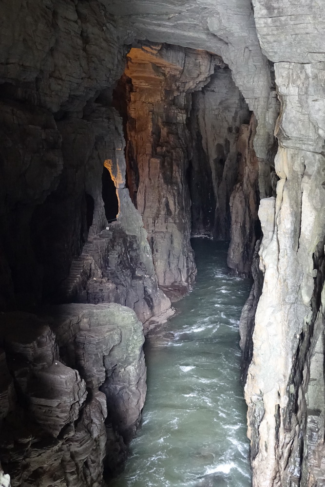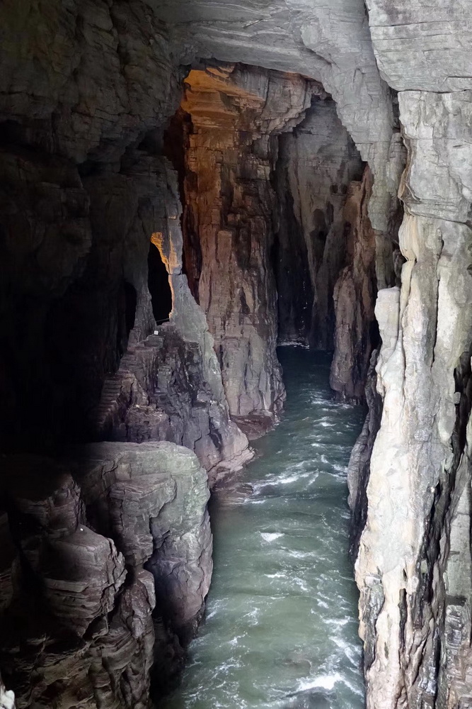 洞中景觀千姿百態(tài),神秘莫測(cè)。水洞口的臥龍吞江瀑布落差20余米,吼聲如雷,氣勢(shì)磅礴。李仁奇 攝