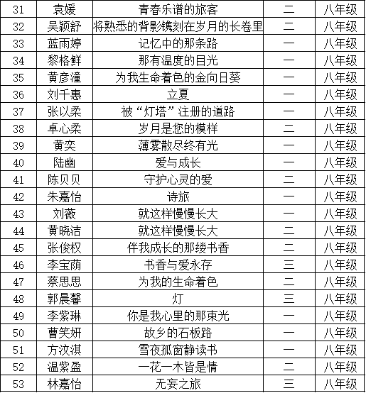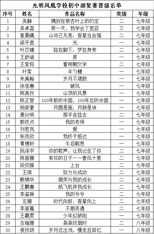 自2021年1月,活動征稿啟動以來,獲得了深圳市廣大中小學(xué)生、教師、文學(xué)愛好者的熱烈響應(yīng)積極參與,吸引了深圳百余所學(xué)校的上萬人關(guān)注報(bào)名。現(xiàn)公布光明區(qū)鳳凰學(xué)校晉級復(fù)賽名單如下: