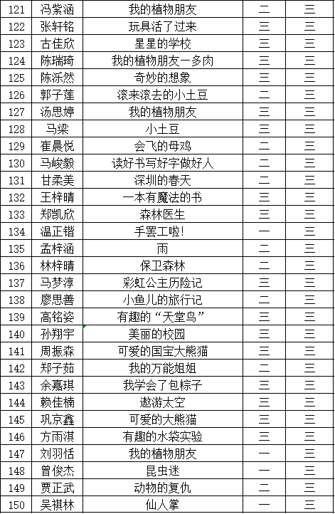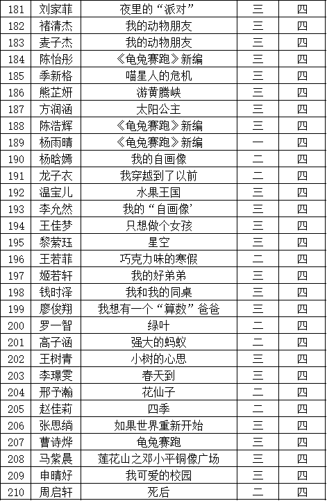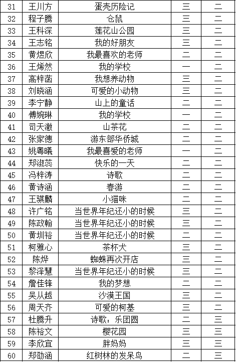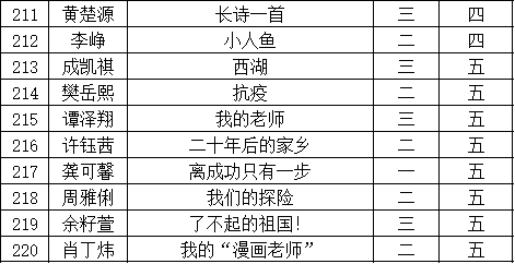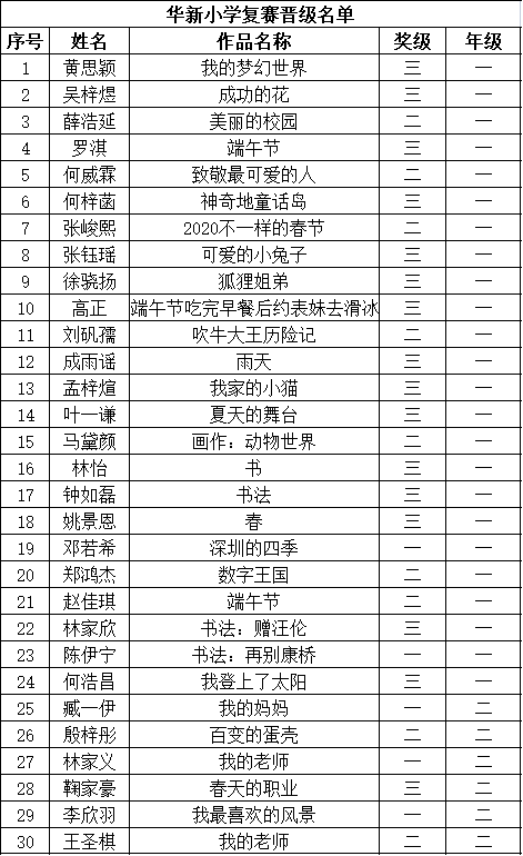 自2021年1月,活動征稿啟動以來,獲得了深圳市廣大中小學(xué)生、教師、文學(xué)愛好者的熱烈響應(yīng)積極參與,吸引了深圳百余所學(xué)校的上萬人關(guān)注報(bào)名?,F(xiàn)公布福田區(qū)華新小學(xué)晉級復(fù)賽名單如下: