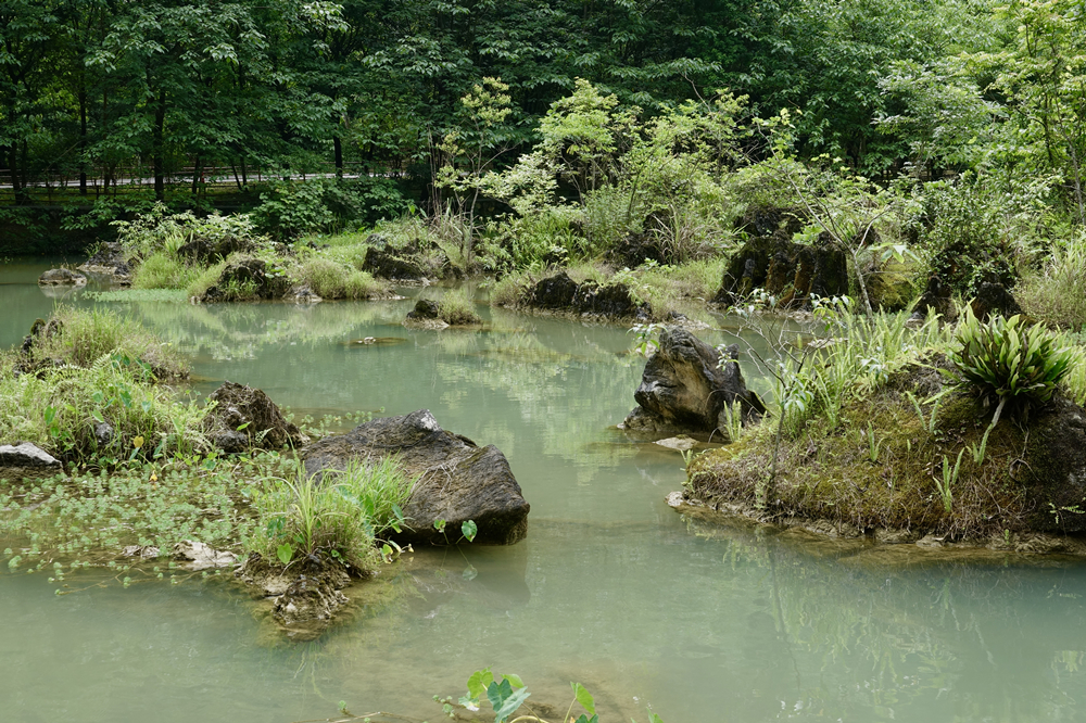 水中的石頭長滿蕨類植物,就像一個(gè)個(gè)盆栽。李仁奇 攝