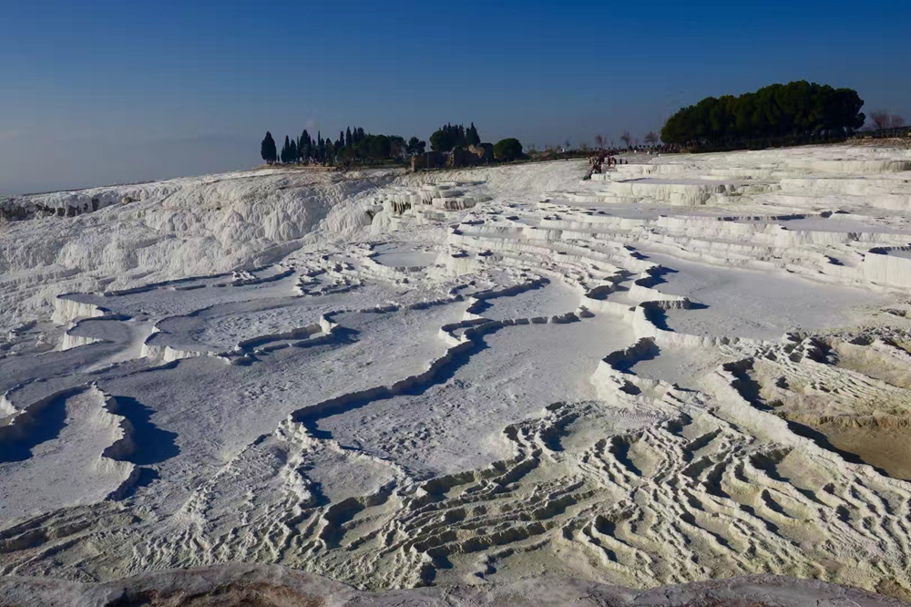 棉花堡是土耳其最著名的旅游景區(qū)之一,位于土耳其西南部紡織工業(yè)城市代尼茲利附近,與緊鄰它的希拉波利斯古城一起被聯(lián)合國教科文組織列為世界自然文化雙遺產(chǎn)。李仁奇 攝