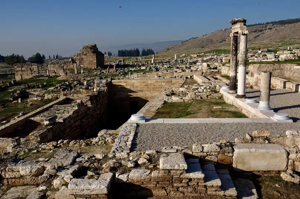目前還遺留有大浴場(chǎng)、競(jìng)技場(chǎng)、街道、大劇場(chǎng)和古墳場(chǎng)......的殘?jiān)珨啾凇@钊势?攝