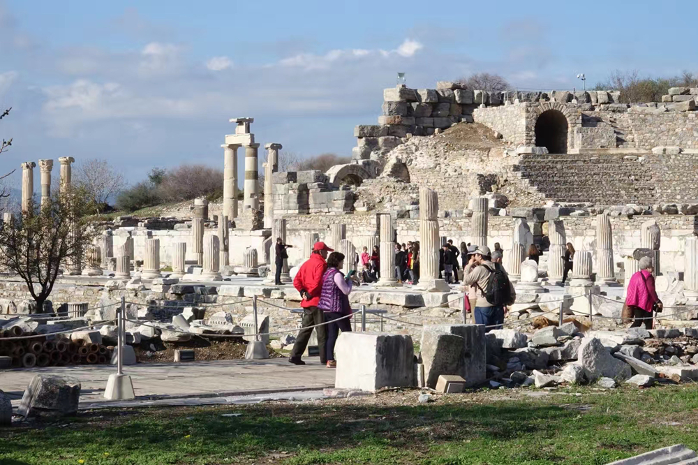 立柱背后是市政廳遺址。經(jīng)過(guò)幾百年的地貌變遷,以弗所的入海口漸漸被淤泥填塞,它賴以生存的海洋貿(mào)易遂告終結(jié),加上地中海沿岸頻發(fā)的地震,以弗所難逃被遺棄的噩運(yùn),這座新約《圣經(jīng)》中出現(xiàn)過(guò)的城市,最終淪為一片大理石廢墟。李仁奇 攝