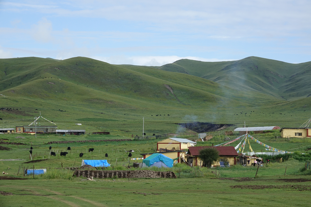 遠處群峰迭起,近處河流穿梭,徜徉在中間的牛羊悠閑地吃著草兒,這讓我們感受到了草原的另一種美!李仁奇 攝