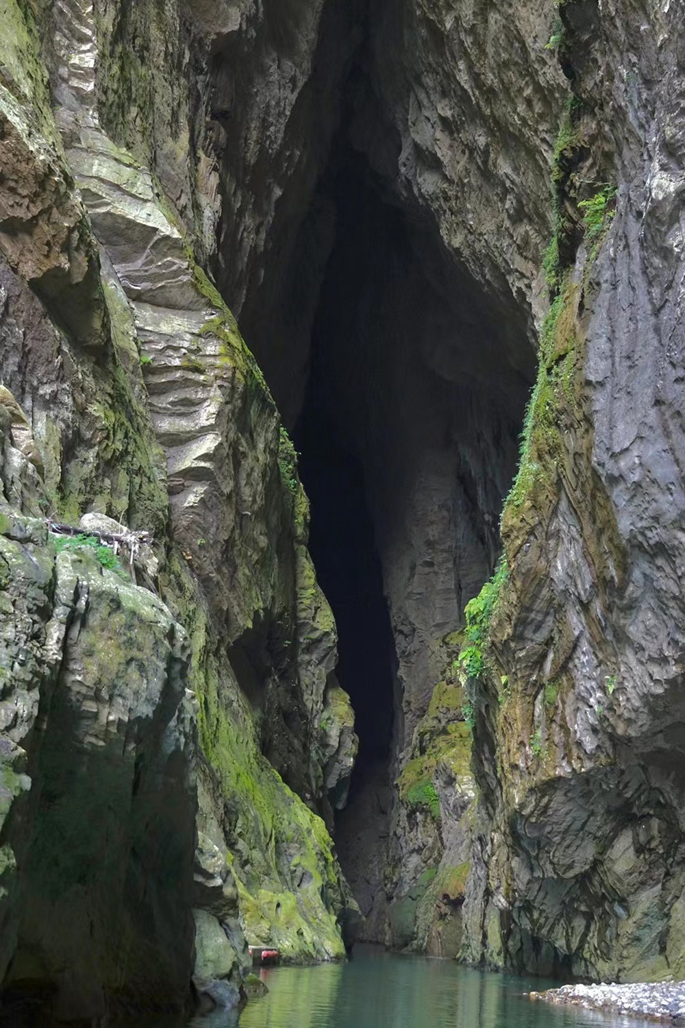濯水古鎮(zhèn)附近神奇的蒲花暗河是濯水景區(qū)的組成部分。它由4條河流匯聚而成,全長(zhǎng)約1.6公里,其中暗河部分長(zhǎng)700余米,河水最深處達(dá)20余米,河道最窄處僅3米。李仁奇攝