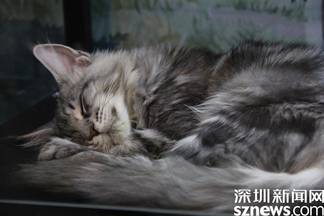 長相硬朗帥氣的緬因“大佬”,在熟睡的時候也是一只“小甜心”。