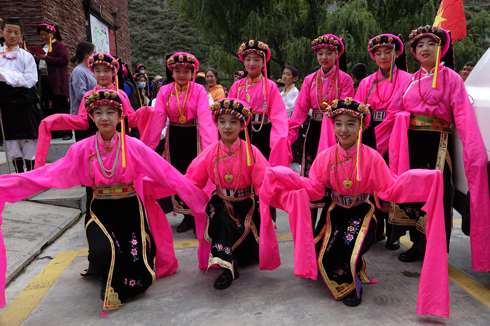 一個(gè)個(gè)風(fēng)姿綽約的丹巴姑娘在藍(lán)天白云的映襯下,來(lái)回穿梭,宛如朵朵飄逸的彩云,光彩耀眼。李仁奇 攝