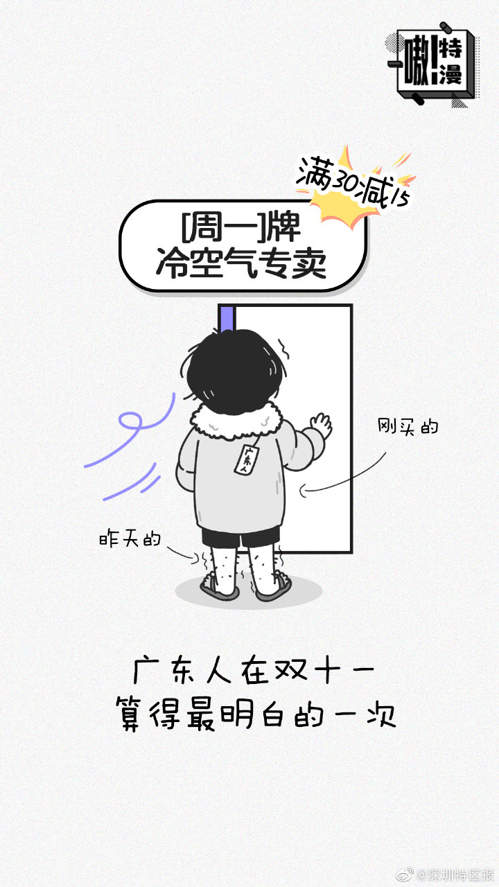 #深圳一夜速凍#,昨天還是夏天,今天氣溫15-19℃,周一牌冷空氣如期到貨了,#深圳人要跟短袖說拜拜了#,這一波滿三十減十五@深圳人還滿意嗎?