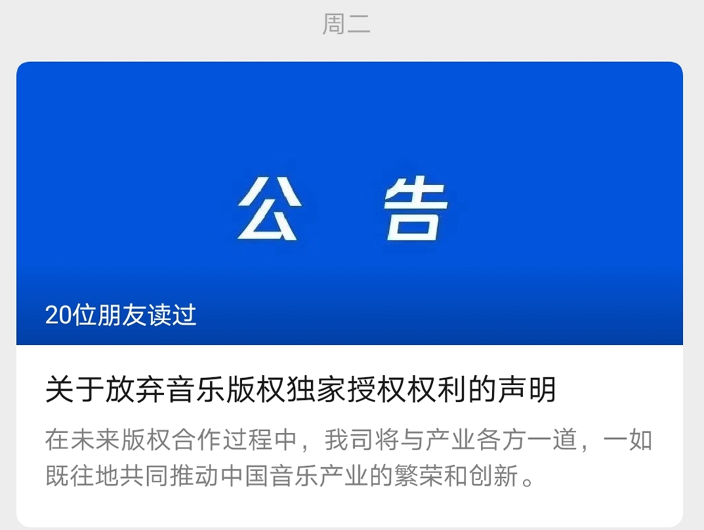 (相關(guān)報(bào)道:發(fā)聲明放棄音樂(lè)版權(quán)獨(dú)家授權(quán),騰訊為啥這樣做)