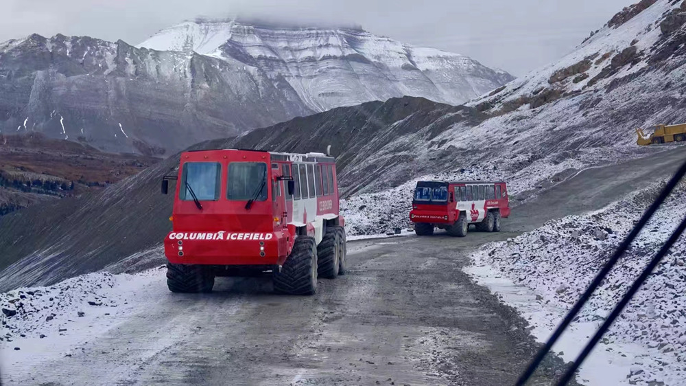 哥倫比亞冰原服務(wù)中心就在冰原大道邊,提供住宿、餐飲、專為游客提供近距離接觸冰川的服務(wù)。李仁奇 攝