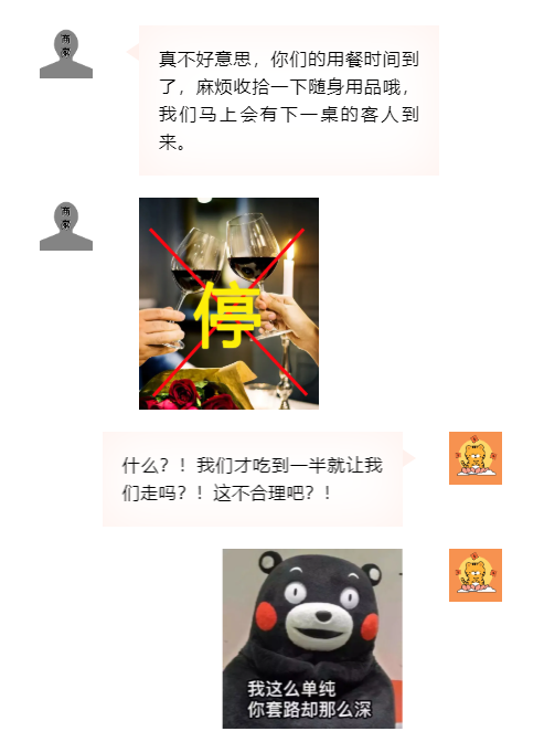經(jīng)商家提前告知的限時(shí)就餐規(guī)定,且消費(fèi)者仍愿意消費(fèi)的行為于商家與消費(fèi)者雙方意思自洽,且協(xié)商一致的情形,雙方應(yīng)遵守。如商家未提前告知消費(fèi)者限時(shí)就餐的規(guī)定,則涉嫌侵害消費(fèi)者的知情權(quán)、公平交易權(quán)。(消費(fèi)提示:特殊節(jié)日里,外出就餐的消費(fèi)者較多,消費(fèi)者可以提前咨詢(xún)商家了解,是否有限時(shí)就餐的規(guī)定,并根據(jù)具體情況選擇餐廳,如遭遇侵權(quán)行為,應(yīng)保留相關(guān)證據(jù)材料,以便維權(quán)。)