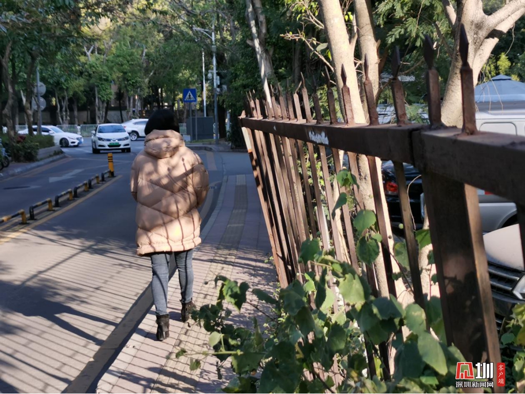 1月12日下午4時30分,正是小學放學時間。記者在竹香一路看到,過往接送孩子的家長絡(luò)繹不絕。由于竹香一路一側(cè)人行道通行距離不足一米,且靠近深南汽配城的鐵柵欄”張牙舞爪“,搖搖欲墜,向外傾斜擠壓了通行空間,不少家長讓孩子走在人行道上,自己則是走在車行道上,與身邊的汽車擦肩而過。