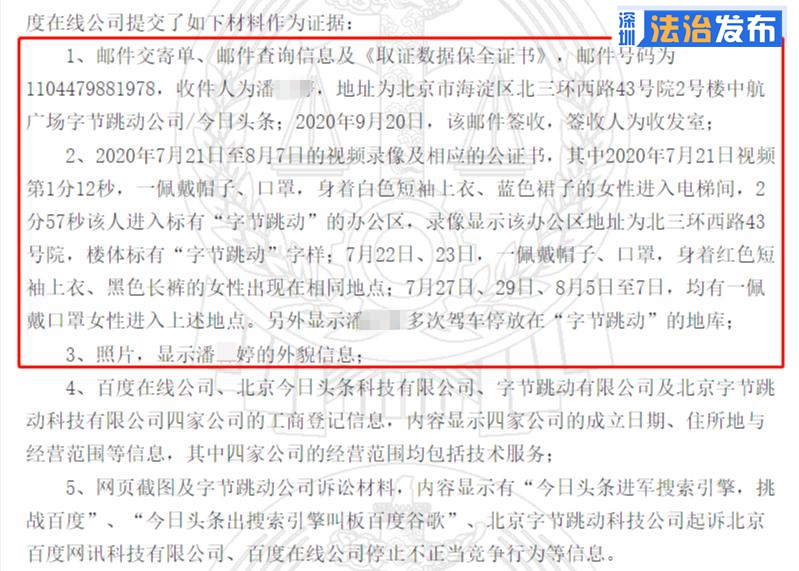 有一個(gè)細(xì)節(jié)值得注意:百度公司不僅向字節(jié)跳動(dòng)辦公地址寄去收件人為潘某某的快遞,而且向法庭提供了潘某某出現(xiàn)在字節(jié)跳動(dòng)辦公區(qū)、駕車停放在字節(jié)跳動(dòng)地庫等多個(gè)視頻錄像,這些舉動(dòng)被網(wǎng)友解讀為現(xiàn)實(shí)版諜戰(zhàn)大片。很多人從案件看到互聯(lián)網(wǎng)行業(yè)激烈的人才爭奪戰(zhàn)和同業(yè)競爭的殘酷,也再次感受到競業(yè)限制的威力。