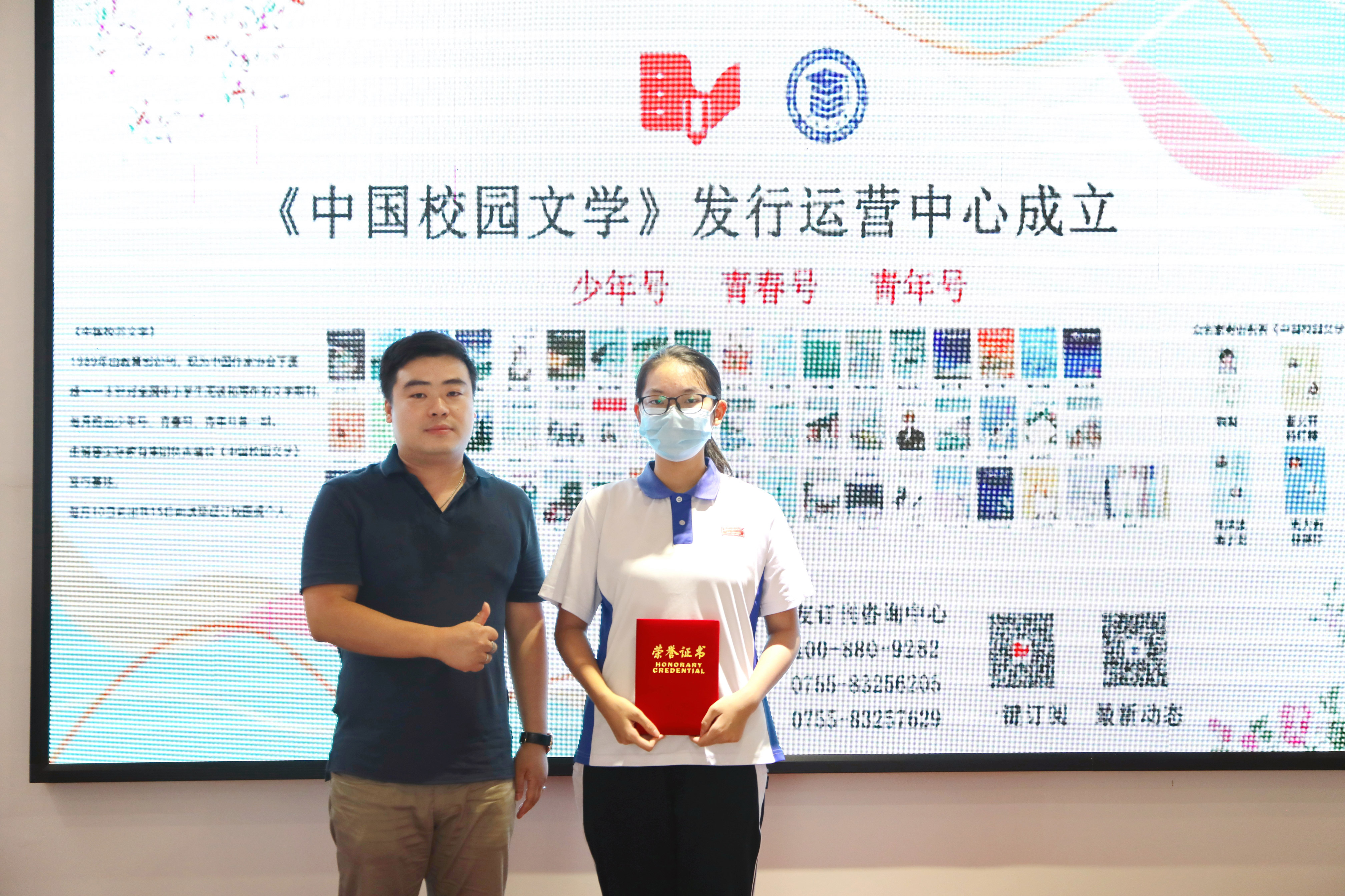 “一起向未來?鵬城冬奧故事”,中國(guó)校園文學(xué)獲獎(jiǎng)代表與頒獎(jiǎng)嘉賓合影