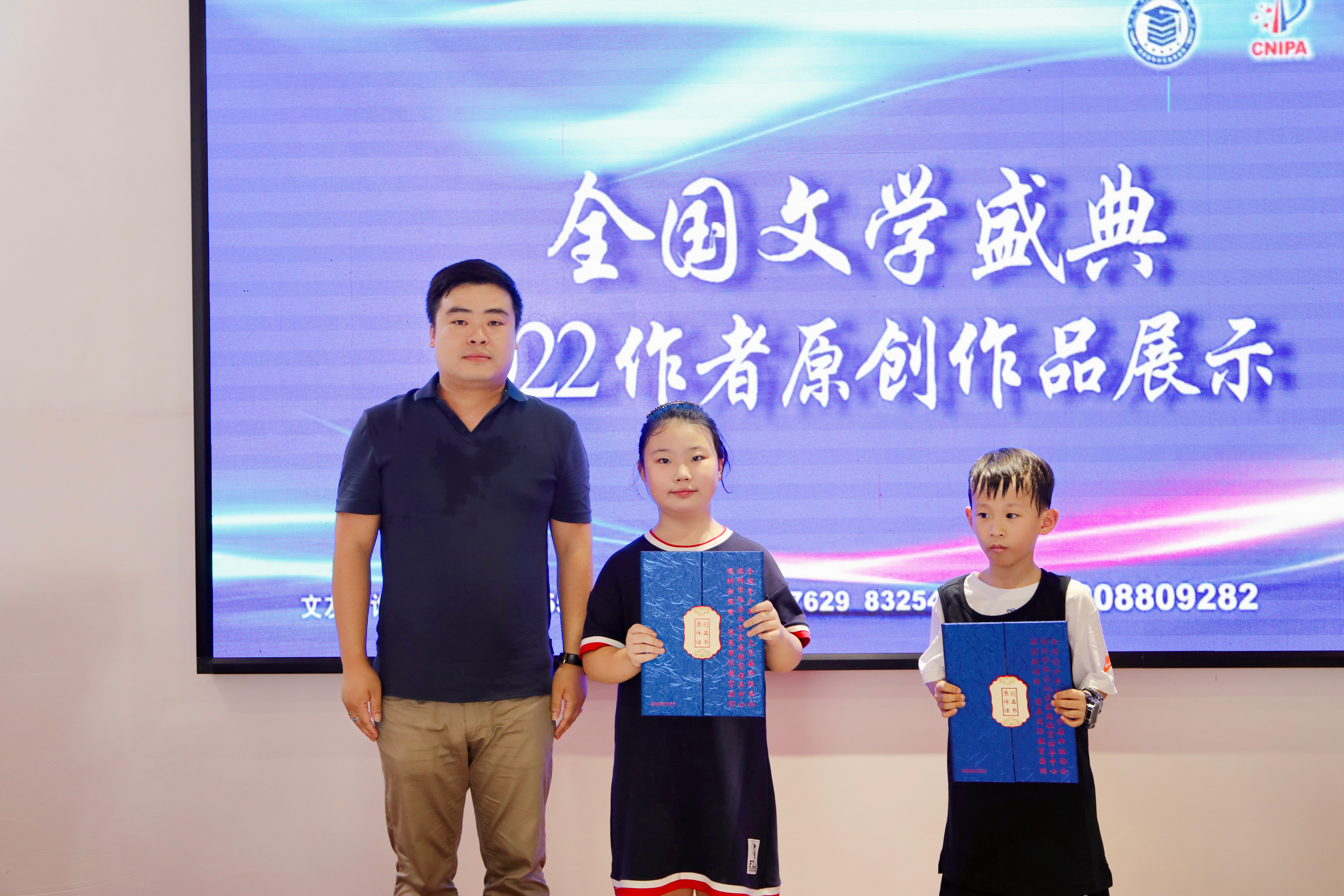 獲得原創(chuàng)作品證書和入選原創(chuàng)作品個人專輯的作者代表們與頒獎嘉賓合影