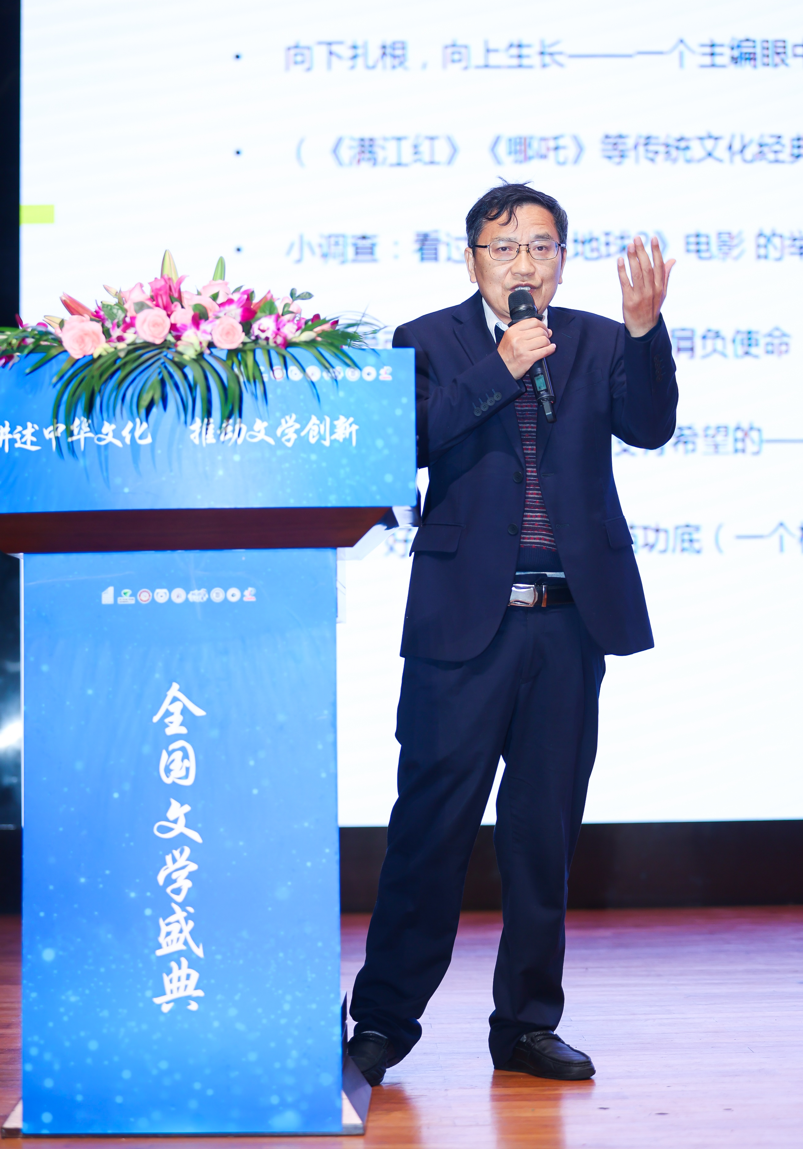 活動現場,“全國文學盛典名師大講堂”主講嘉賓謝晨為大家?guī)碇黝}講座