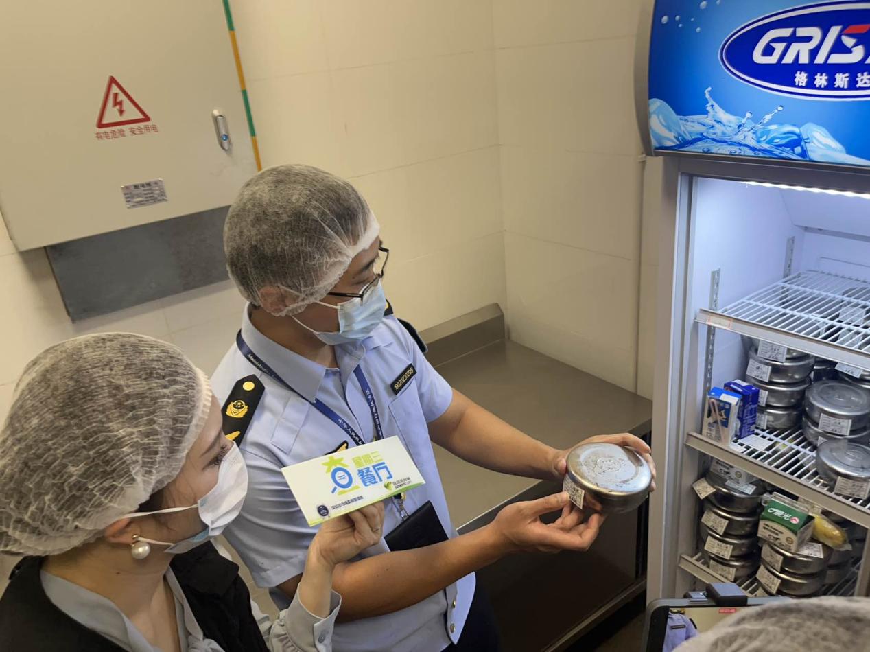隨后,執(zhí)法人員一行進(jìn)入食堂后廚,對(duì)面點(diǎn)間、儲(chǔ)藏間、清洗區(qū)、冷凍庫(kù)等各分區(qū)進(jìn)行執(zhí)法檢查。經(jīng)查,后廚整體布局合理,其中食材存儲(chǔ)符合規(guī)定且日期均在保質(zhì)期內(nèi);留樣冰箱內(nèi)按規(guī)定保存了近期餐食樣品,留樣品名及時(shí)間標(biāo)注清晰,確保了來源可追溯;清洗區(qū)分區(qū)明確,刀具砧板按照顏色管理,有效避免了交叉感染。此外,在后廚辦公室,執(zhí)法人員查看了索證索票落實(shí)情況及日管控、周排查、月調(diào)度等相關(guān)制度管理資料,各類信息管理較完善。
