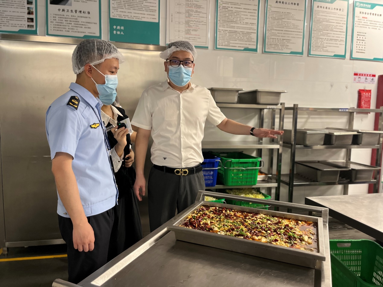 執(zhí)法人員現(xiàn)場對學(xué)校后廚進(jìn)行詳細(xì)檢查,分別從采購索證索票、進(jìn)貨查驗、制作加工、備餐配送、場所和設(shè)施清潔維護(hù)、餐飲具清洗消毒、從業(yè)人員健康管理,制止餐飲浪費,食品安全總監(jiān)配置履職情況,以及落實主體責(zé)任的“日管控周排查月調(diào)度”制度等方面進(jìn)行詳細(xì)檢查。經(jīng)檢查,整體情況良好,但存在部分細(xì)節(jié)問題,如水產(chǎn)品刀具分類可更細(xì)致、操作臺積水需清理、面點間的食材存放需避免陽光直射等,針對檢查過程中發(fā)現(xiàn)的問題,執(zhí)法人員現(xiàn)場責(zé)令學(xué)校限期整改到位。同時,快檢工作人員對餐廳使用的食材進(jìn)行了抽檢,結(jié)果均為陰性。