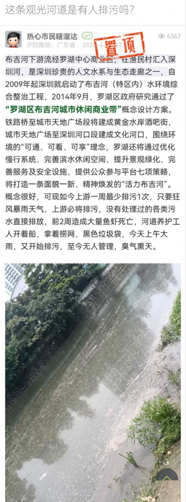 21. 帖文《深圳筆架山河治理成效顯著》