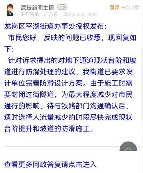 6. 帖文《平湖站地下隧道入口整改建議》